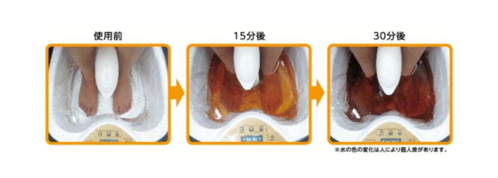 体内の脂肪・細胞内に蓄積された重金属・化学物質類はプラス帯電していますので、高濃度のマイナスイオン水(マイナス帯電)に足をつけることにより、血流・リンパの流れに乗って足裏から引き出されます。