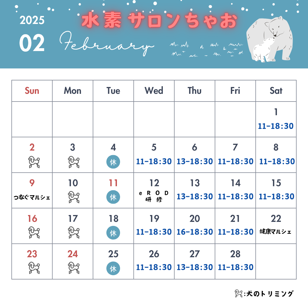 2月の営業日カレンダーです❣️